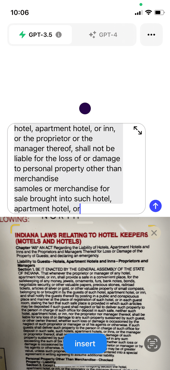 3. You can use the Scan Text option to populate the chat window with text from a paper document (or a digital one).