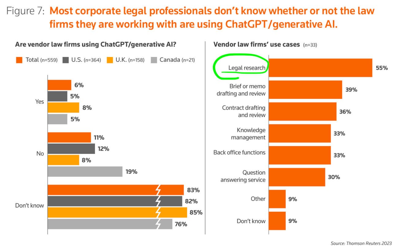 Not sure if you caught it, but a few weeks ago Thomson Reuters released its ChatGPT & Generative AI within Corporate Law Departments report.