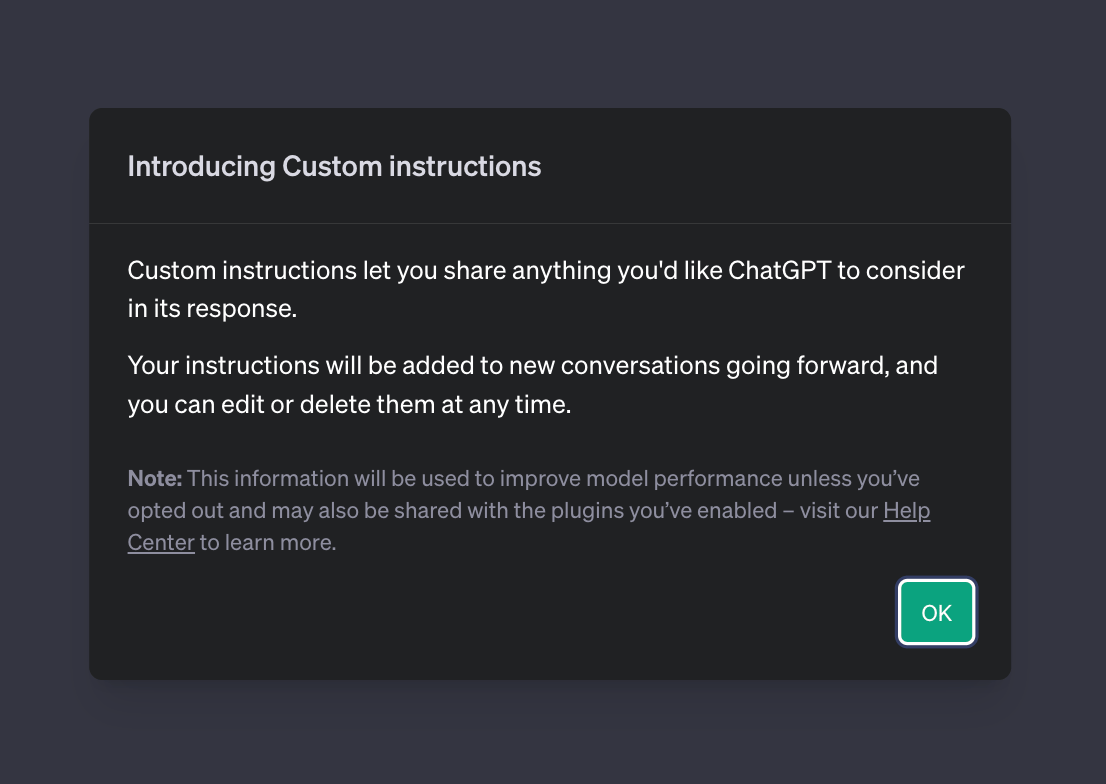 OpenAI just saved us all a ton of time! If you are a Plus subscriber, you now have a way of personalizing your ChatGPT experience. No more wasting time telling ChatGPT who you are or how you want it to respond (two key methods of high-performance prompting). Now you can embed this information directly into ChatGPT settings so it remembers and considers it in every one of its responses.